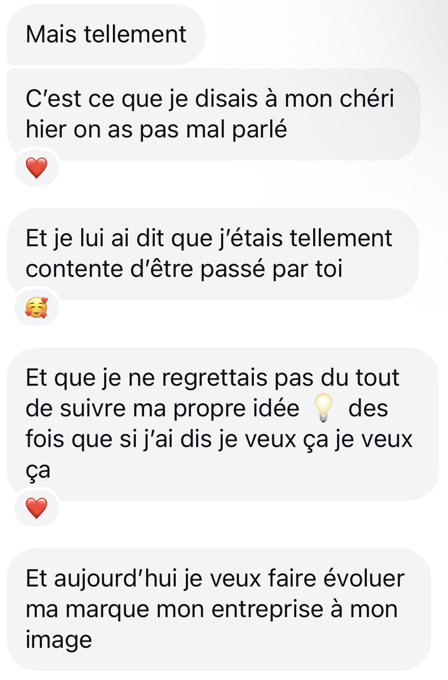 "When we started, I felt lost, with only a blurry project in mind. Astrid helped me put words, structure, and vision to it all — and most importantly, she made me realize it was possible, and that it came from me. Today, I finally know where I’m heading, with solid foundations I can build on."